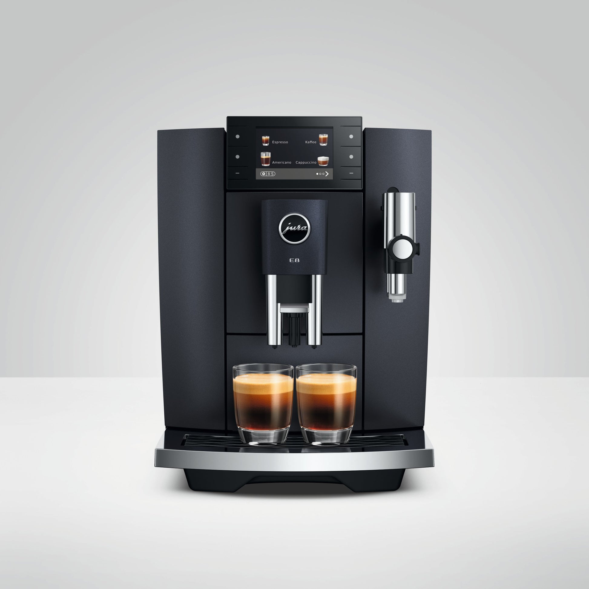 Der E8 Cosmic Black (ED) Kaffeevollautomat von JURA vereint elegante Optik mit fortschrittlicher Technologie und richtet sich an alle, die zuhause Barista-Qualität auf Knopfdruck genießen möchten. Mit One-Touch-Funktion, präziser Milchschaumzubereitung und smarter App-Anbindung bietet er ein benutzerfreundliches Kaffeeerlebnis für jeden Tag.